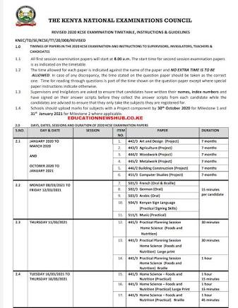 Contents is kcse 2020 timetable out?